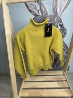 Представленный товар — это детский вязаный свитер-водолазка горчичного или желтого цвета. Судя по изображениям из поиска, это модель унисекс, подходящая как для мальчиков, так и для девочек.