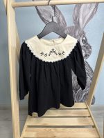 - Цвет: Черный, с контрастным белым воротником и белой вышивкой.